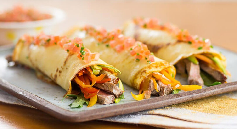 4) Mini Panqueca de Filé Mignon em Tiras com Legumes