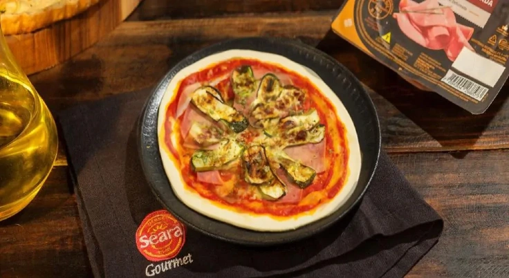 18) Pizza de mortadela defumada com abobrinha é perfeita para servir no jantar