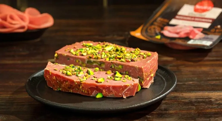 9) Terrine de mortadela defumada com pistache para ocasiões especiais