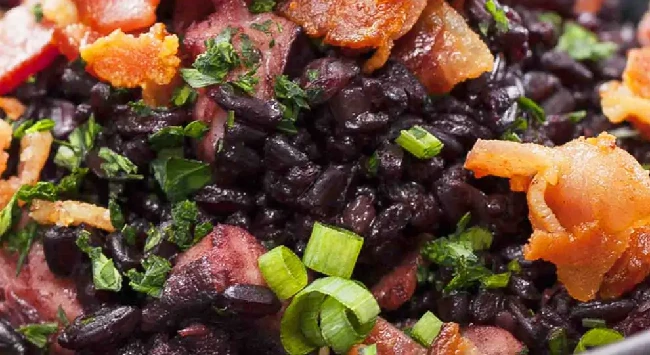 11. Arroz Negro com Bacon em Cubos