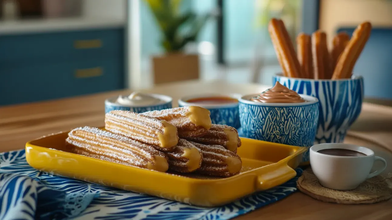Para quem gosta de sabores mais intensos, uma calda de café com whisky pode ser servida à parte. Essa experiência permite que cada pessoa mergulhe o churros conforme seu gosto.