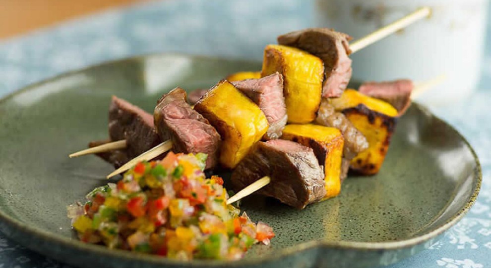 - Espetinho de Carne com Banana da Terra