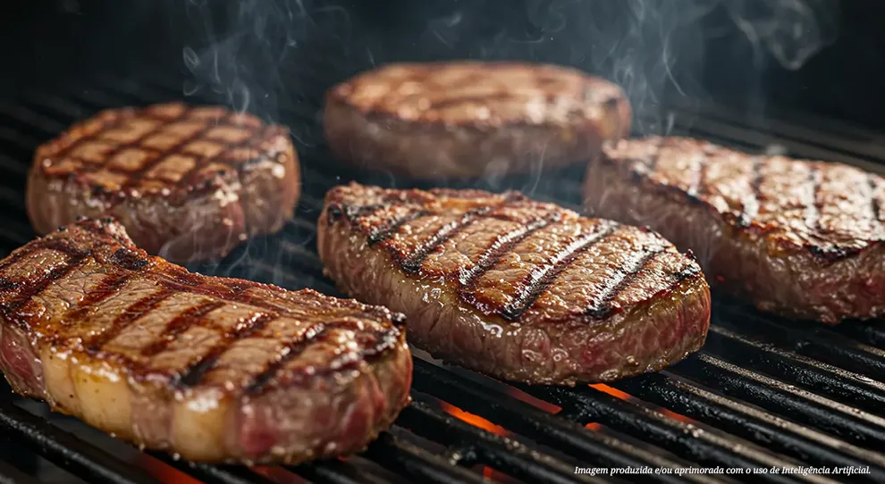 A grelha permite que a carne tenha contato direto com a brasa para criar uma crosta caramelizada que intensifica o sabor.