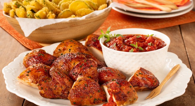 Outra dica de petisco com frango na airfryer são as coxinhas da asa com molho barbecue. Para o preparo, basta fazer uma marinada para frango com sal, pimenta-do-reino e vinagre de maçã e depois besuntar as coxinhas com barbecue. Na hora de servir, a dica é preparar molhos extras, como molho de gorgonzola ou molho cheddar! Essa receita de frango na airfryer é perfeita para um happy hour com os amigos.