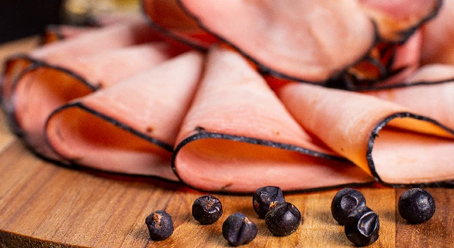O presunto alemão é um frio especial que se destaca pela qualidade e sabor característicos. Feito a partir do pernil suíno, ele é banhado em um mix de temperos, como as bagas de zimbro, que dão um sabor acentuado na peça. O zimbro é uma especiaria usada na culinária alemã, que tem um aroma marcante e dá um toque bem especial ao presunto artesanal alemão. Você pode aproveitar o frio em sanduíches típicos, preparos gourmet, como uma tábua de frios, e muitas outras delícias.