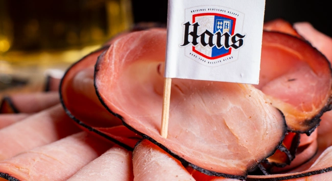 A produção do presunto alemão é feita a partir de um corte especial do pernil suíno, sem pele e com uma fina camada de gordura, o que dá mais sabor ao frio. O Presunto Alemão Hans (Geräucherter Wacholder- Kochschinken) é ainda mais saboroso por ser marinado em zimbro e louro durante 40 horas. Além disso, é cozido e defumado por cerca de 7 horas, garantindo uma suculência, sabor e textura inigualável.