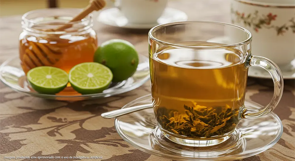 Conhecido por suas propriedades antioxidantes, o chá verde se torna ainda mais agradável quando você adiciona limão e mel. A combinação fortalece o sistema imunológico e ajuda na digestão.