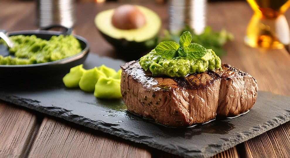 O filé mignon grelhado com chimichurri e abacate é uma receita sofisticada e cheia de sabor. O filé mignon é servido com um generoso molho chimichurri com abacate. A combinação de sabores do molho complementa a suculência da carne e adiciona um contraste de texturas.
