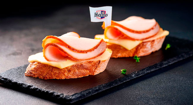 Com sabor defumado e textura suculenta, o Lombo Cond Fatiado Hans é ideal para compor bruschettas com um toque mais robusto. Nesta receita, ele aparece acompanhado de queijo derretido, resultando em uma experiência de conforto e intensidade. Uma boa sugestão é usar queijos com boa capacidade de derretimento, como gruyère ou muçarela de búfala, e finalizar com ervas frescas ou um toque de mostarda dijon para equilibrar a gordura do lombo.