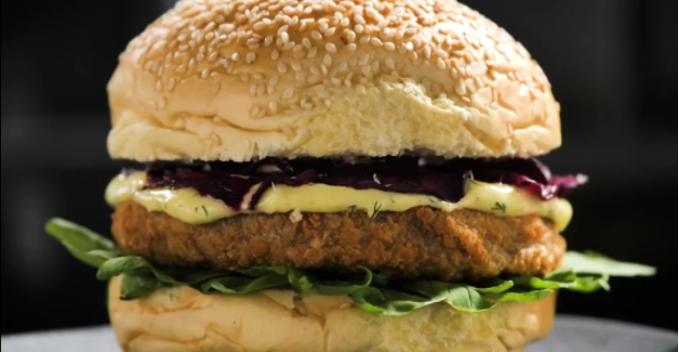 Hamburguer Vegetal com Chutney de Tomate, Mostarda Dijon no Pão de Hamburguer de Sacadura